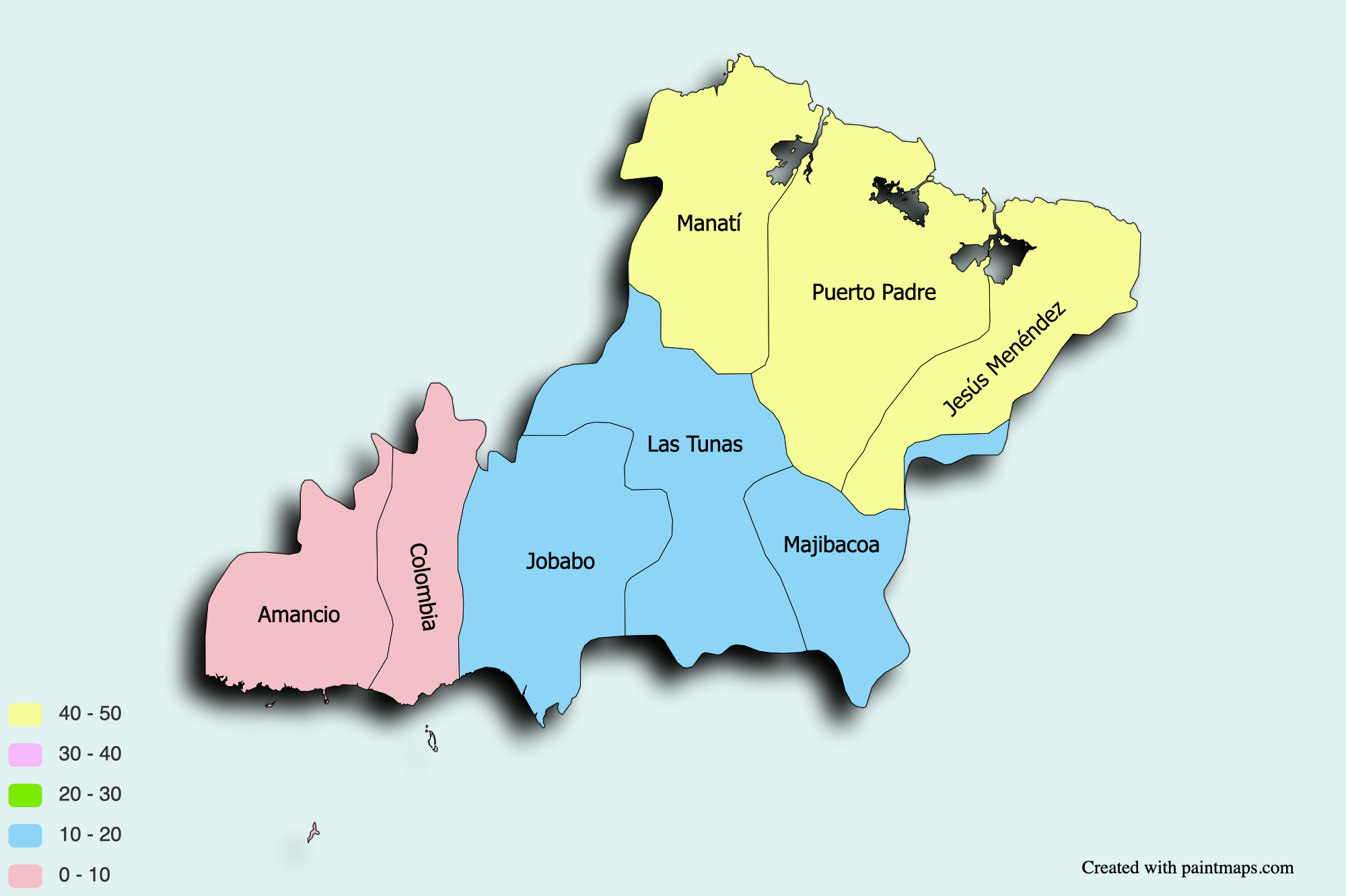 16. Condado de Las Tunas: Las Tunas, Jobabo, Majibacoa.
