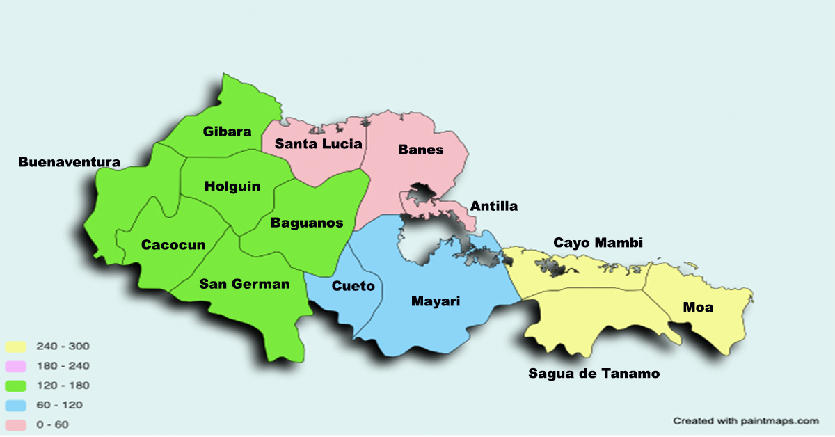 8. Condado de Holguín: Holguín, Gibara, Báguanos, Cacocum, Buenaventura, San Germán.